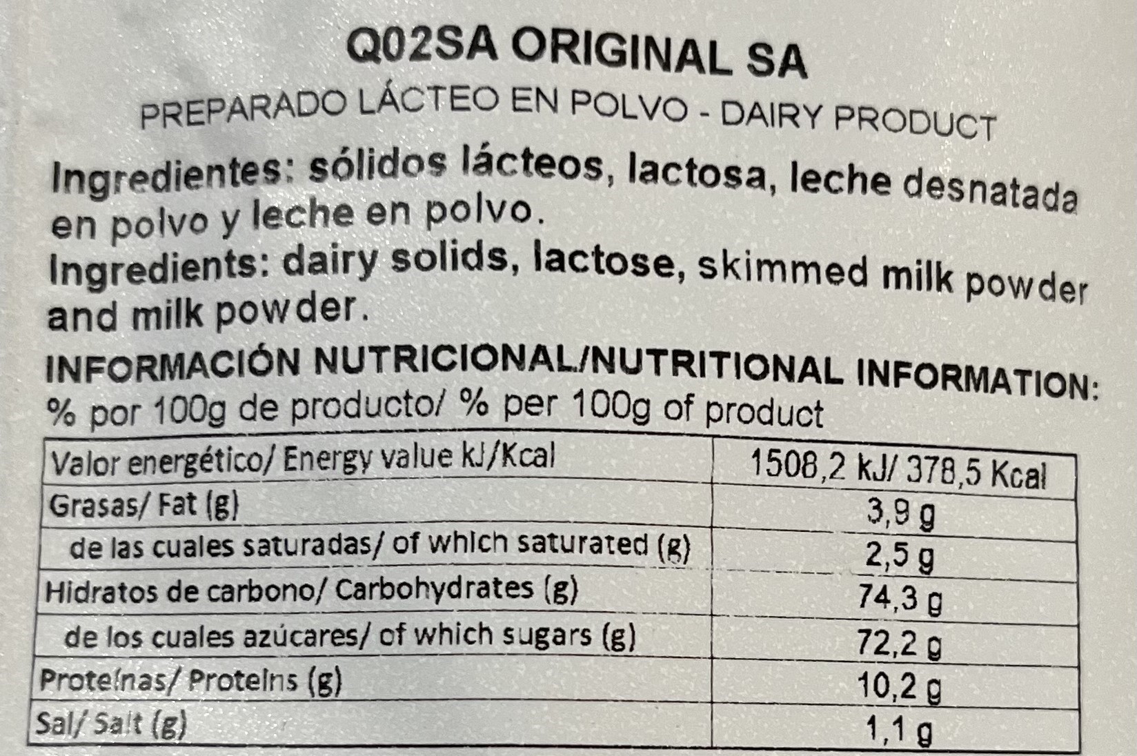 Leche en polvo, lactosa, sólidos lácteos, azúcar