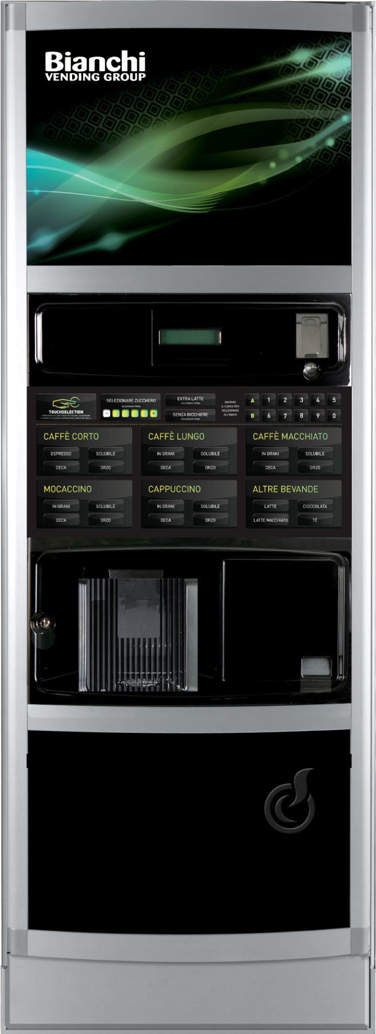La primera de ellas es una máquina vending Bianchi LEI 700, con distribuidor automático para bebidas calientes y frías, capacidad para 700 vasos y hasta 36 selecciones directas configurables ya sea como selecciones o como preselecciones además de 12 pulsadores alfanuméricos.